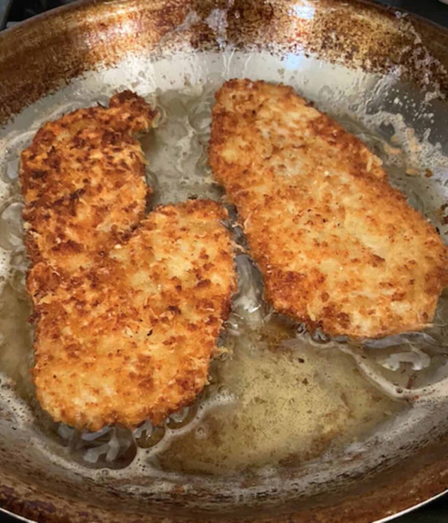 Continue cooking until the chicken is fully done inside and the coating stays crisp. Remove from the pan and let it rest briefly so the juices settle, keeping the texture tender and the crust firm.