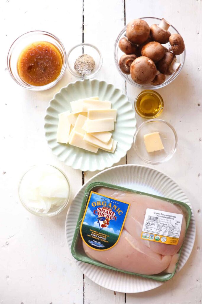 kcalJuicy chicken breasts topped with soft onions, mushrooms, and melted cheese. This dish is warm, simple, and perfect for an easy homemade dinner.