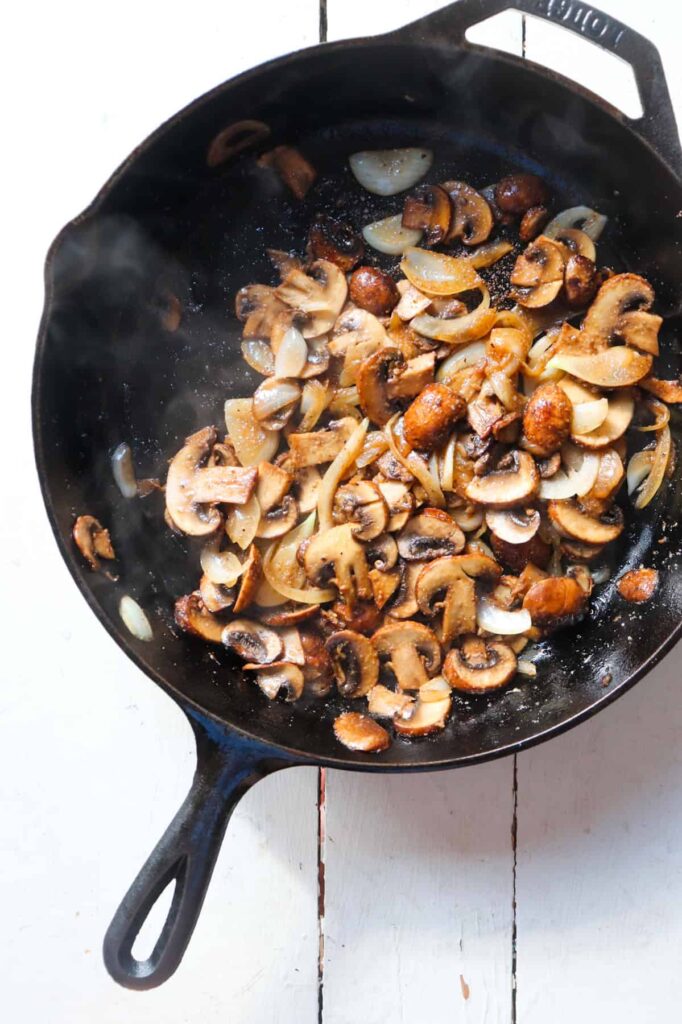 - Cook the mushrooms until their moisture reduces; this keeps the topping from becoming watery.